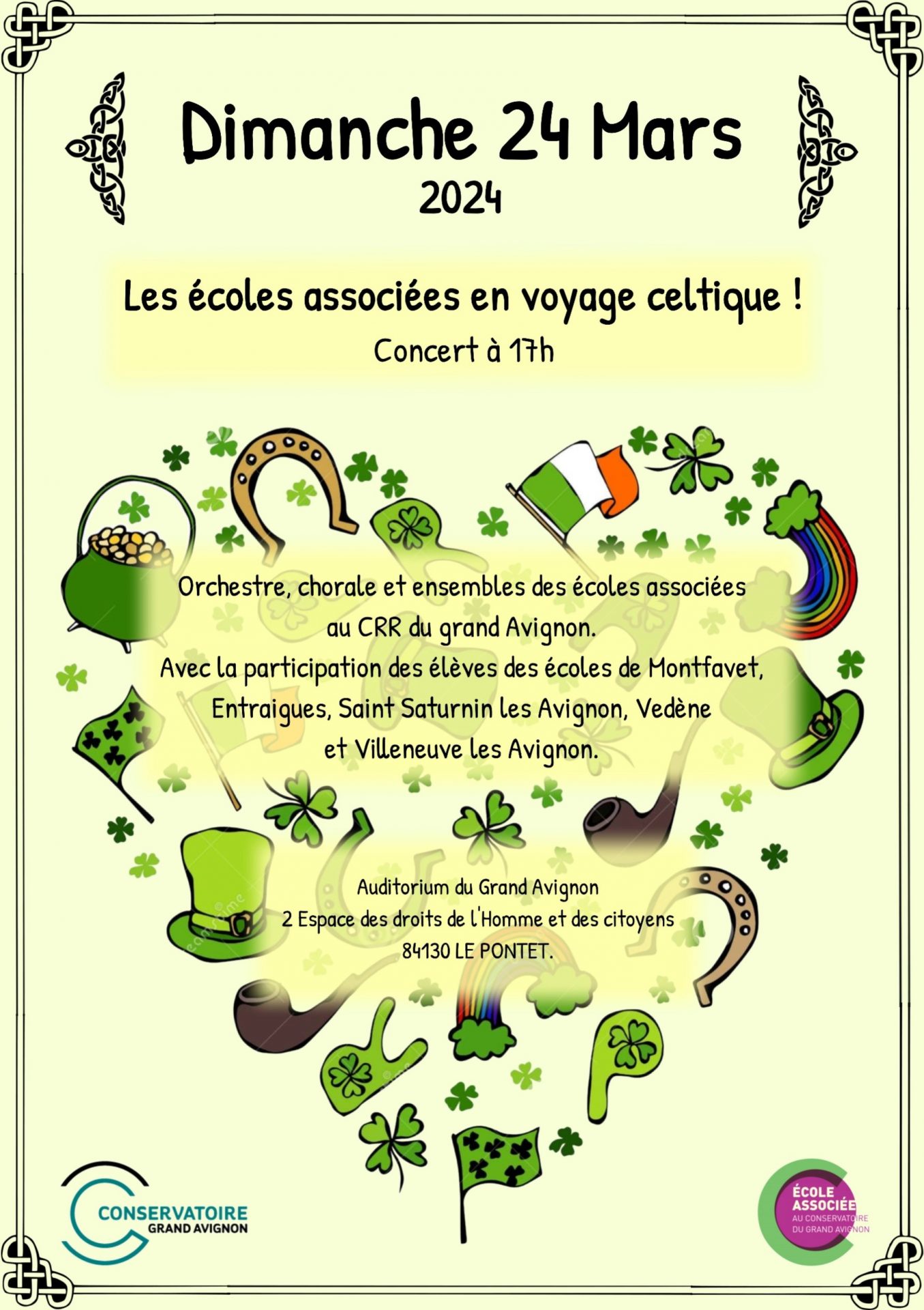 Auditorium du Grand Avignon 2 Esp des Droits de l'Homme et des Citoyens, Site du Château de Fargues, Le Pontet, FranceSamedi 7 mai 2022 Auditorium du Grand Avignon - Le Pontet, 16h00 Concert gourmand "Musique et Mi'gnardises", proposé par Aurélie Taillé - professeur de flûte traversière au conservatoire (entrée libre sur réservation au 04.32.40.46.50) Un projet réunissant l’École Hôtelière et les élèves des classes de flûtes du Conservatoire du Grand Avignon et de Bollène, faisant [...]